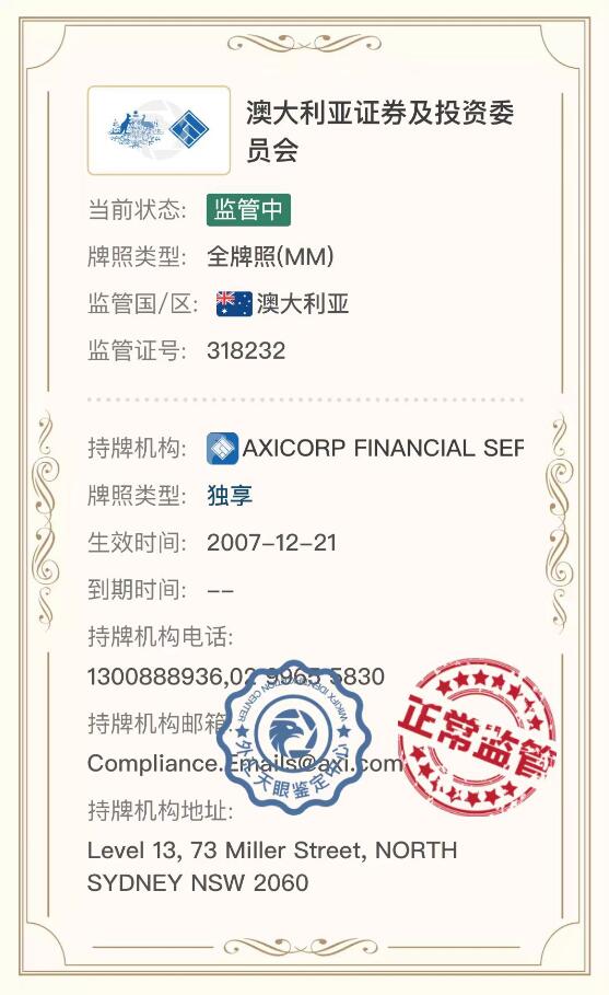 监管中 AxiTrader